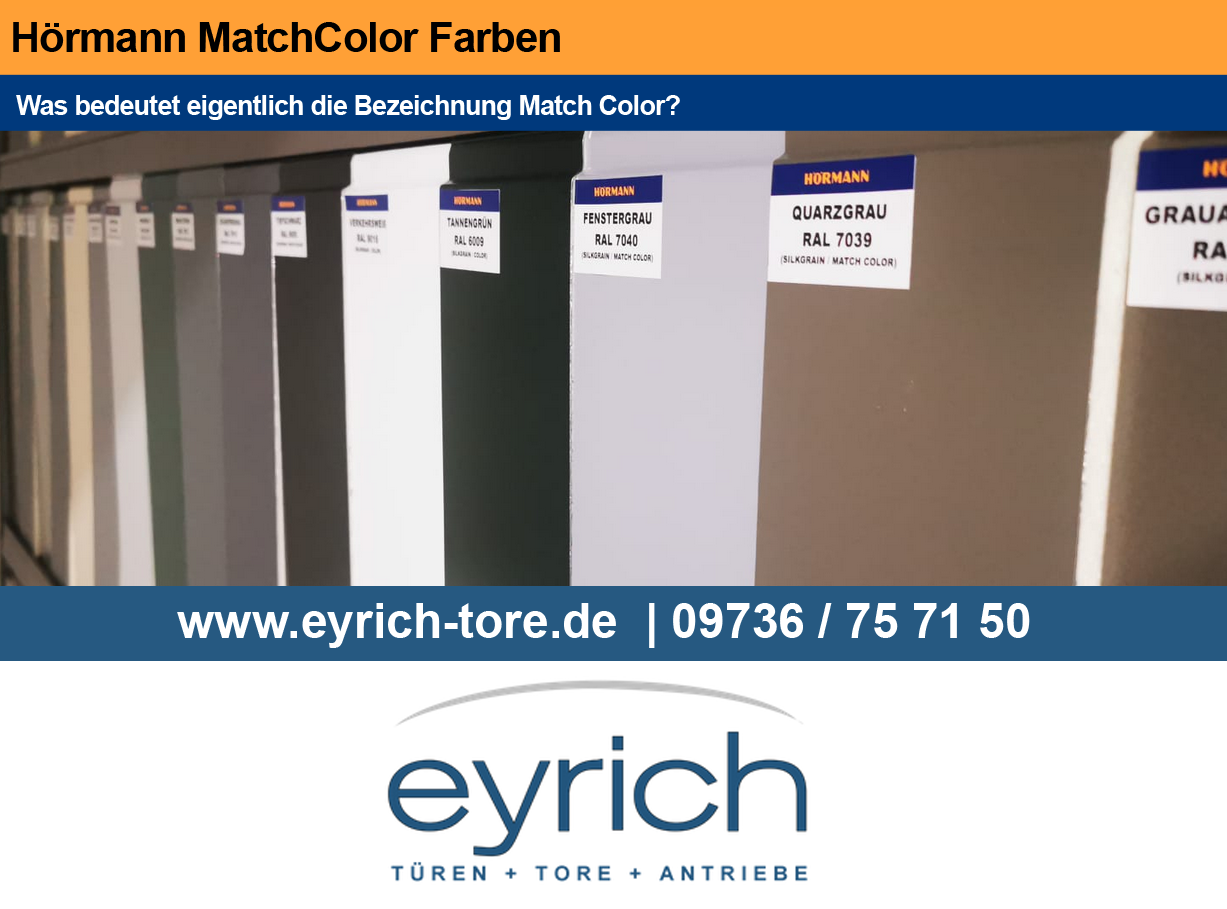 Immer wieder tritt in letzter Zeit bei unseren Beartungsgesprächen die Frage auf: "Was bedeutet eigentlich Hörmann MatchColor?" Das nahmen wir zum Anlass um euch zu informieren: Die Bezeichnung Hörmann MatchColor Vorzugsfarben steht für aufeinander abgestimmte Farben für die harmonische Gesamtansicht (Ansichtsgleichheit) eurer Hörmann Garagen - Sektionaltore, Haustüren, Nebeneingangstüren und Stahltüren. Folgende Farben stehen hierzu zur Auswahl:
